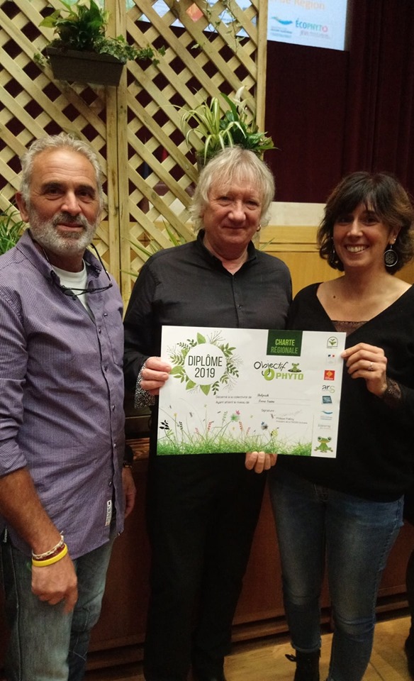 Ces efforts ont été récompensés par l'obtention du label national "Terre Saine", la plus haute distinction possible. Christophe REMOLA (Maire-adjoint en charge de ce projet) et Muriel LELIEVRE (Agent en charge de ce projet) ont fièrement représenté l'équipe municipale lors de la remise des prix organisée au Conseil Régional, en présence du sénateur Joël Labbé (auteur de la loi) et de Philippe PALEZY président de la FREDON Occitanie (Fédération Régionale de Défense contre les Organismes Nuisibles) et son équipe.